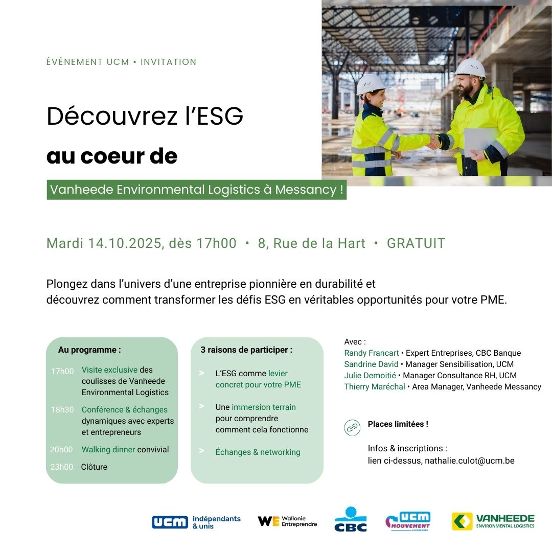 Le 14 octobre, vivez une immersion exclusive chez Vanheede Environmental Logistics à Messancy et inspirez-vous de pratiques concrètes en matière de durabilité, d’innovation et de gouvernance pour faire grandir votre PME autrement.